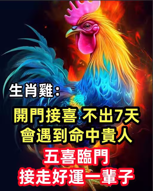 生肖雞:開門接喜,不出7天會遇到命中貴人,五喜臨門,接走好運一輩子