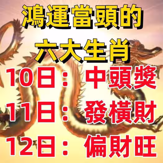 鴻運當頭的六大生肖:9月10日中頭獎,11日發橫財 ,12日偏財旺