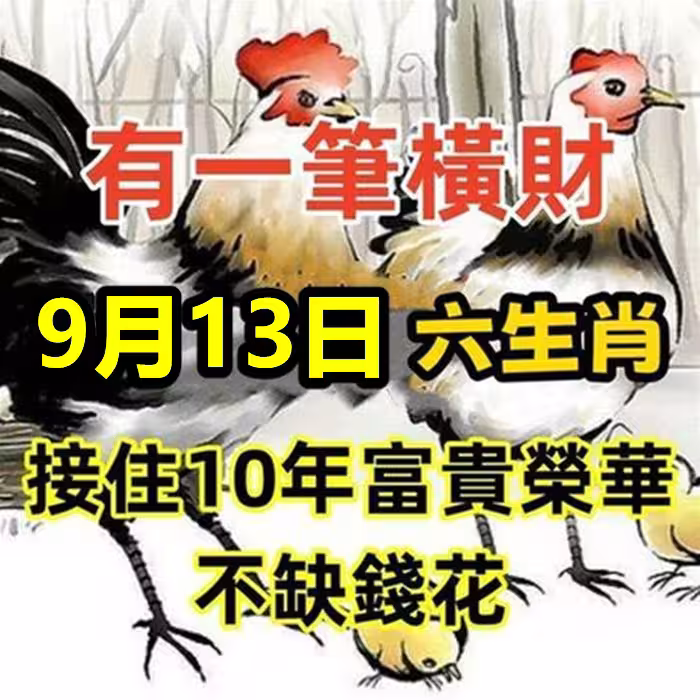 9月13日有一筆橫財,六生肖接住10年富貴榮華,不缺錢花!
