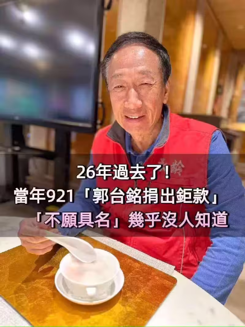 26年過去了!他鬆口當年921「郭台銘捐出巨款」不願具名「默默幫助災民」幾乎沒人知道!