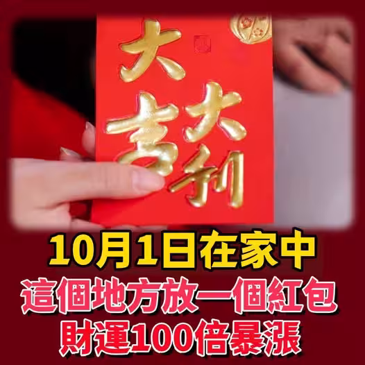風水師偷偷透露:10月1日在家中這個地方放一個紅包,竟能讓財運100倍暴漲,好運一路旺到年底!