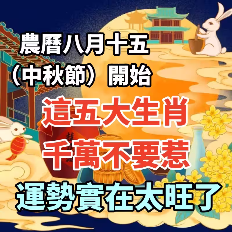 這五大生肖千萬不要惹,農曆八月十五(中秋節)開始運勢實在太旺了~