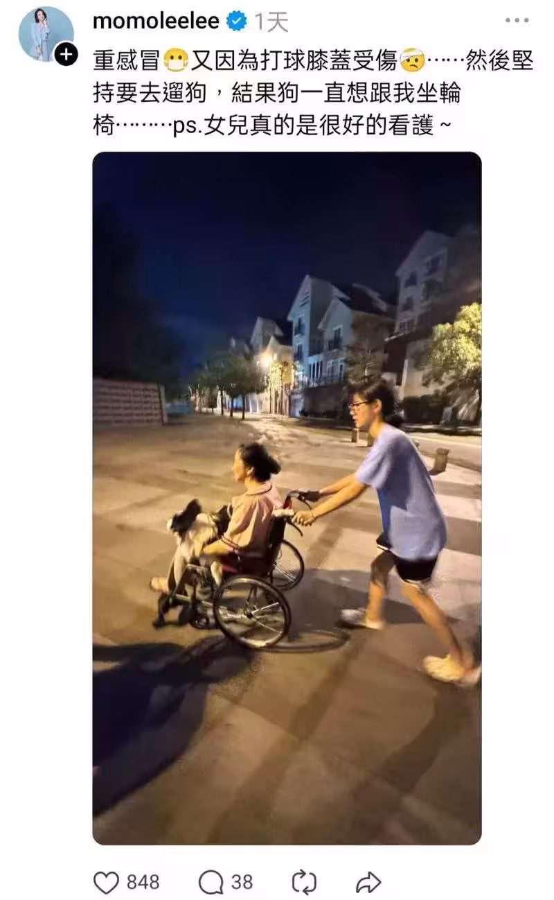陶晶瑩也無奈表示,本來要去遛狗,結果愛犬只想跟她一起坐在輪椅上,不少網友都直呼希望她早日康復。