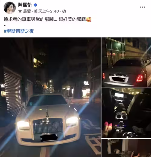 ▲陳匡怡多次在社群PO追求者的豪車,引髮網友討論。(圖/翻攝自陳匡怡臉書)