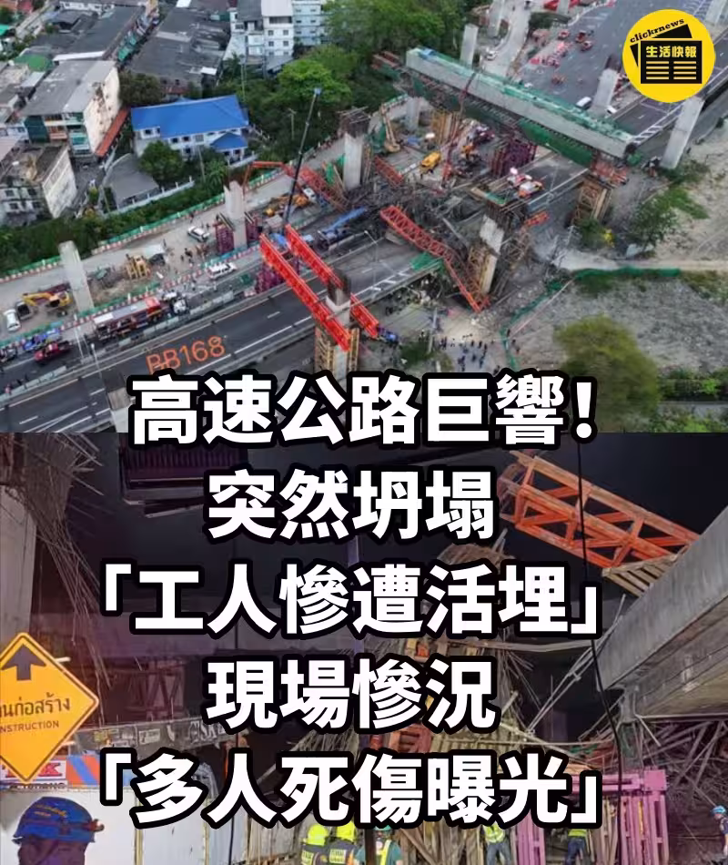高速公路巨響!突然坍塌「工人慘遭活埋」... 現場慘況「多人死傷曝光」