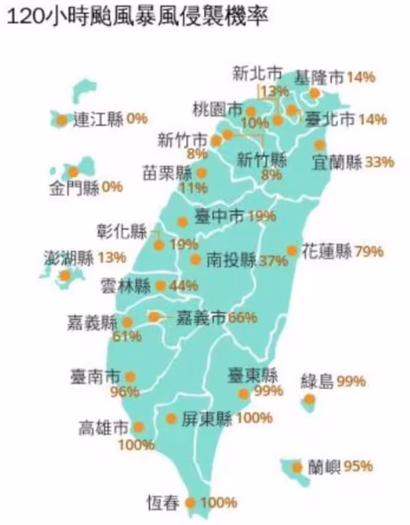 北部地區雖然距離颱風中心較遠,但受到外圍環流與地形效應影響,仍可能出現局部大雨或豪雨,尤其山區累積雨量可能較大。