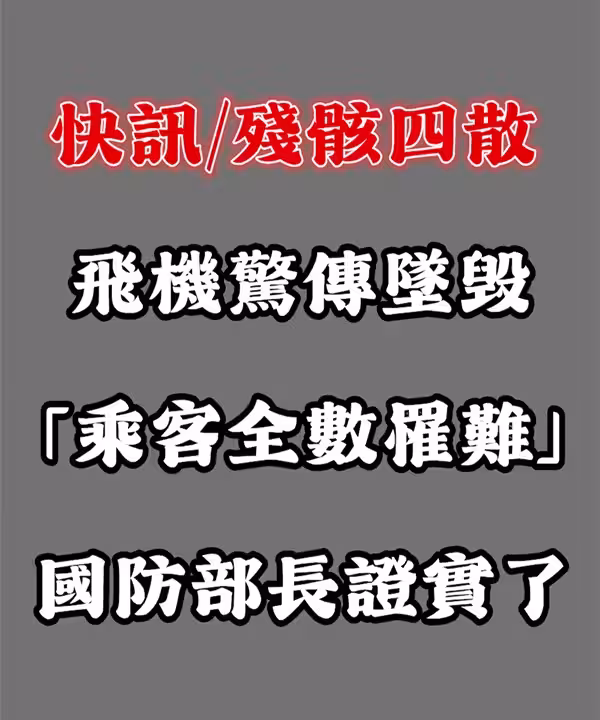 快訊 / 殘骸四散!飛機驚傳墜毀「乘客全數罹難」國防部長證實了