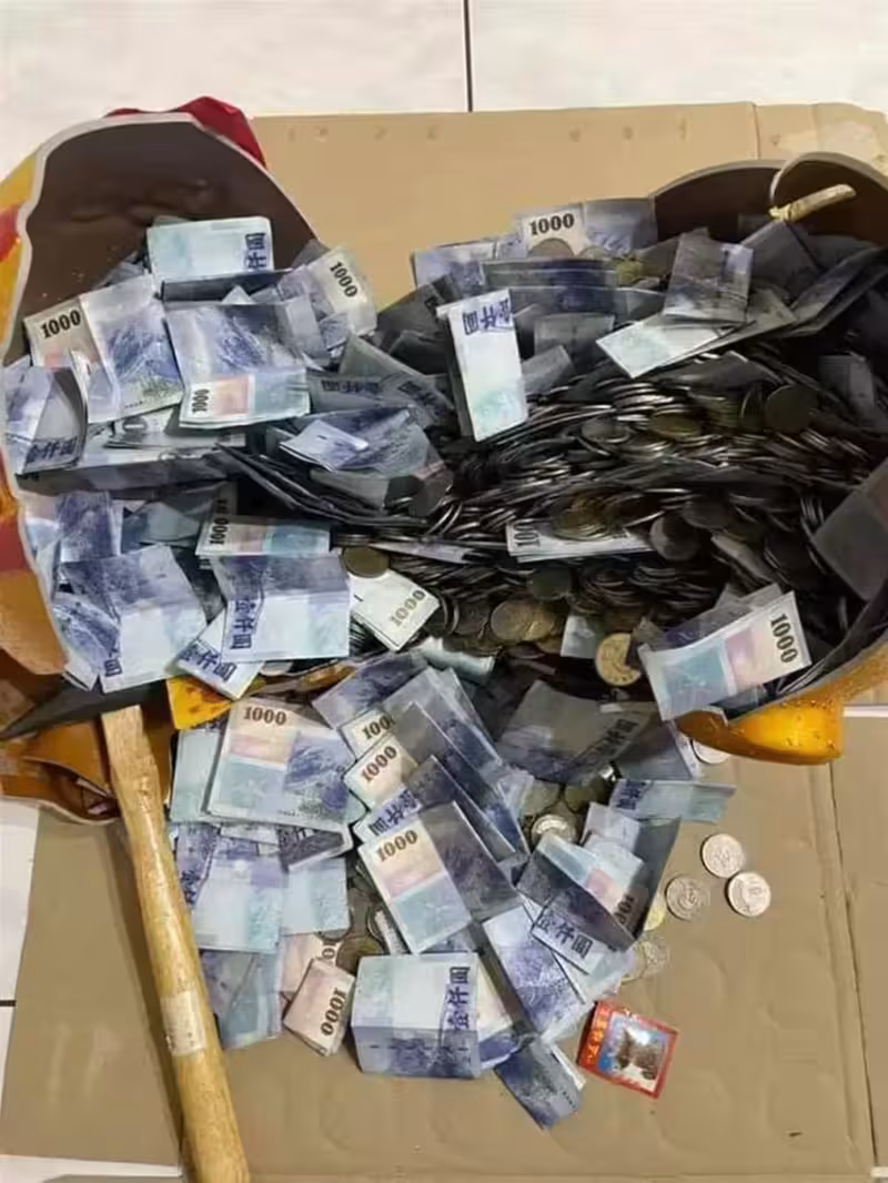 存了一整年!他年末打破豬公看到「一片藍藍紙鈔海」~算出總額後嚇爛:太扯了吧!