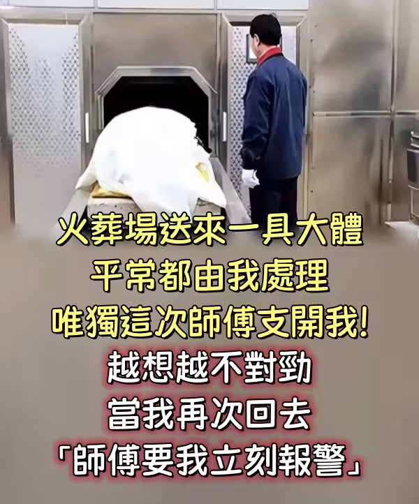 火葬場送來一具大體,平常都由我處理,唯獨這次師傅支開我!越想越不對勁,當我再次回去,「師傅要我立刻報警」