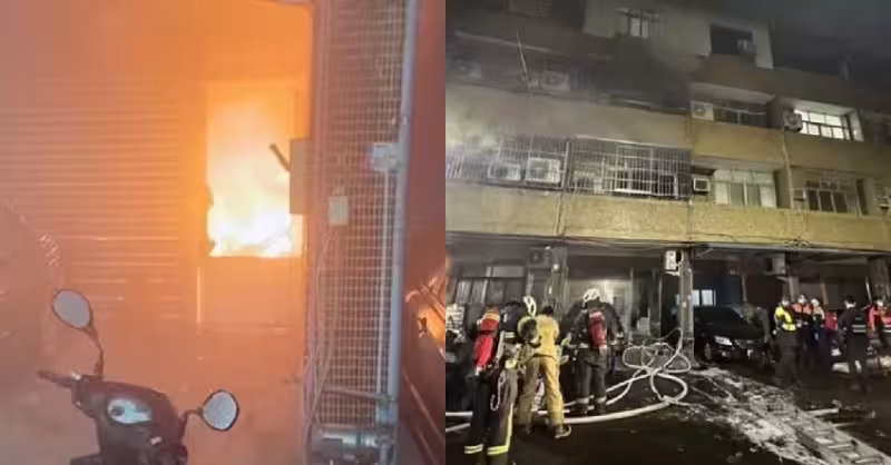 告知消防人員樓下還有一戶人家受困。 消防局立即派出15輛消防車、6輛救護車,動員46名消防人員全力搶救。