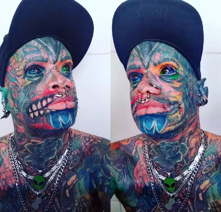 超狂男子「全身超過1500個刺青」牙齦、眼球都沒放過! 曝光未刺青照片「濃眉大眼真面目」判若兩人