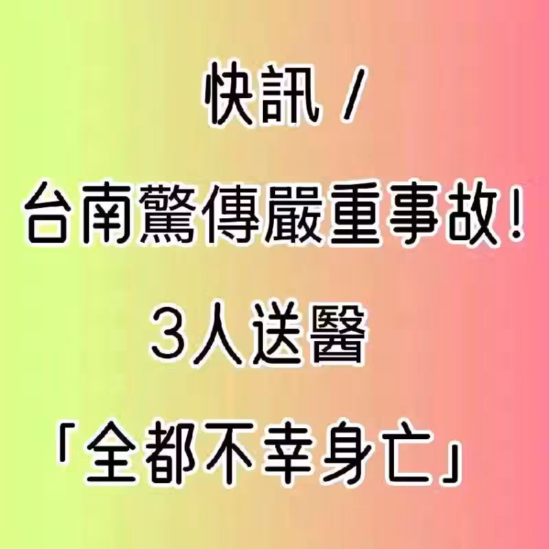 快訊/台南驚傳嚴重事故!3人送醫「全都不幸身亡!」