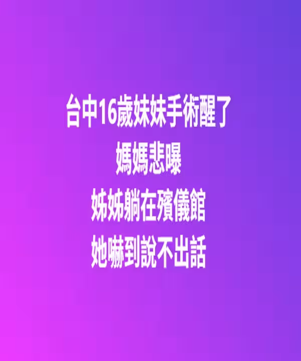 台中16歲妹妹手術醒了!媽媽悲曝「姐姐躺在殯儀館」她嚇到說不出話!