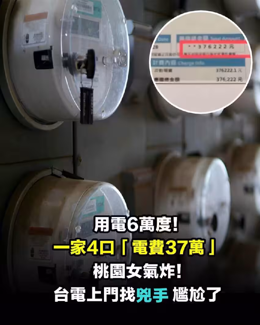 用電6萬度!一家4口「電費37萬」桃園女氣炸!台電上門找兇手尷尬了