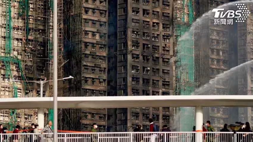 港府初步研判火勢迅速蔓延的主因跟外牆施工的保護材料和發泡膠板有關。