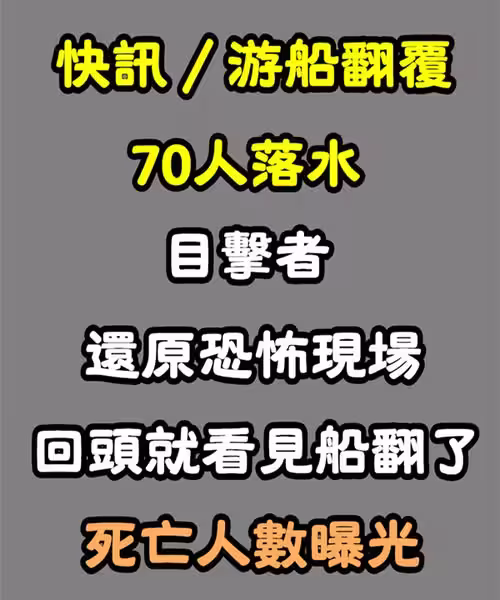 快訊/遊船翻覆70人落水!目擊者還原恐怖現場:回頭就看見船翻了!死亡人數曝光!