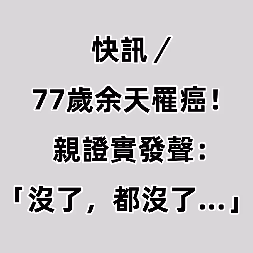 快訊/77歲余天罹癌! 親證實發聲:「沒了,都沒了...」