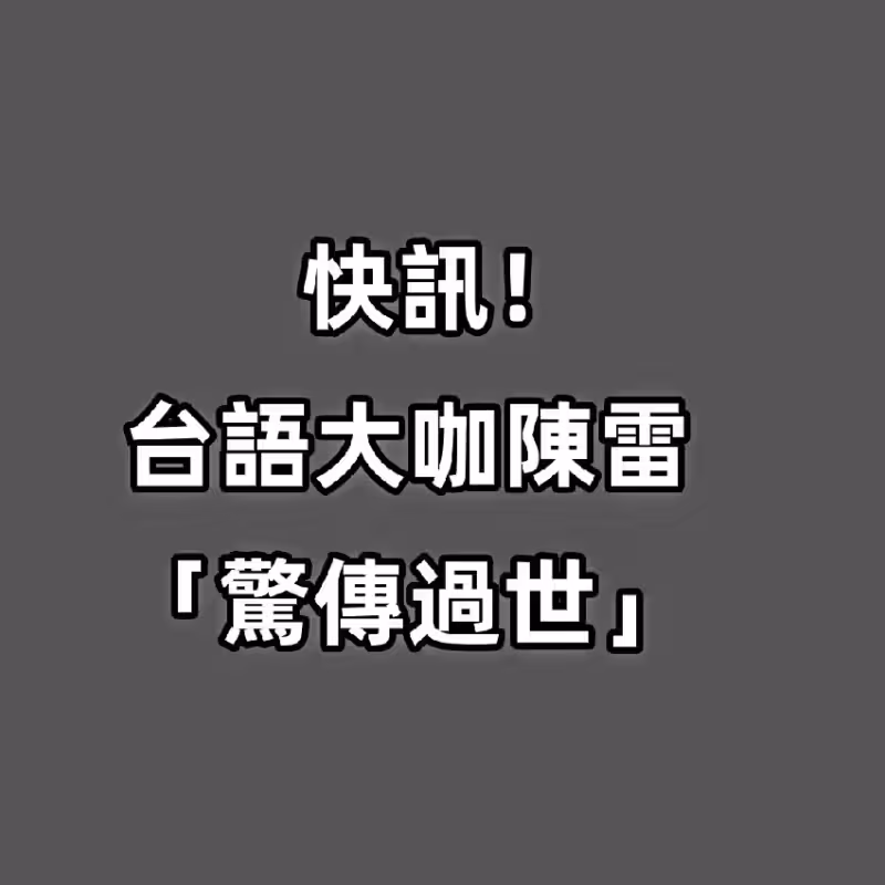快訊/ 台語大咖陳雷「驚傳過世」!