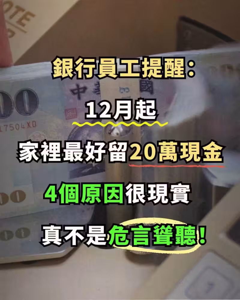 銀行員工提醒:12月起,家裡最好留20萬元現金!真不是危言聳聽!