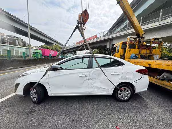 另外當下沒有後車追撞,在連假期間也算是很幸運,他跟聯結車駕駛也趕緊下車放警示牌,等待後續處理
