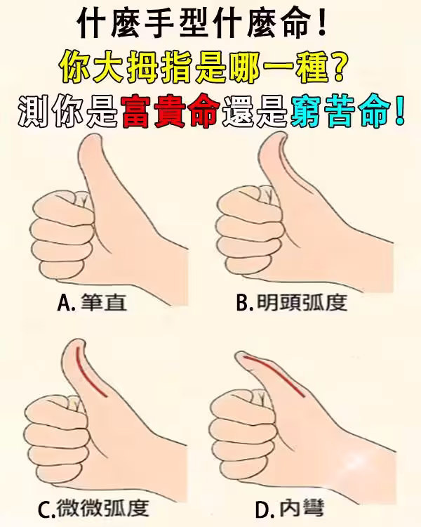 你大拇指是哪一種?測你今生是富貴命還是窮苦命!