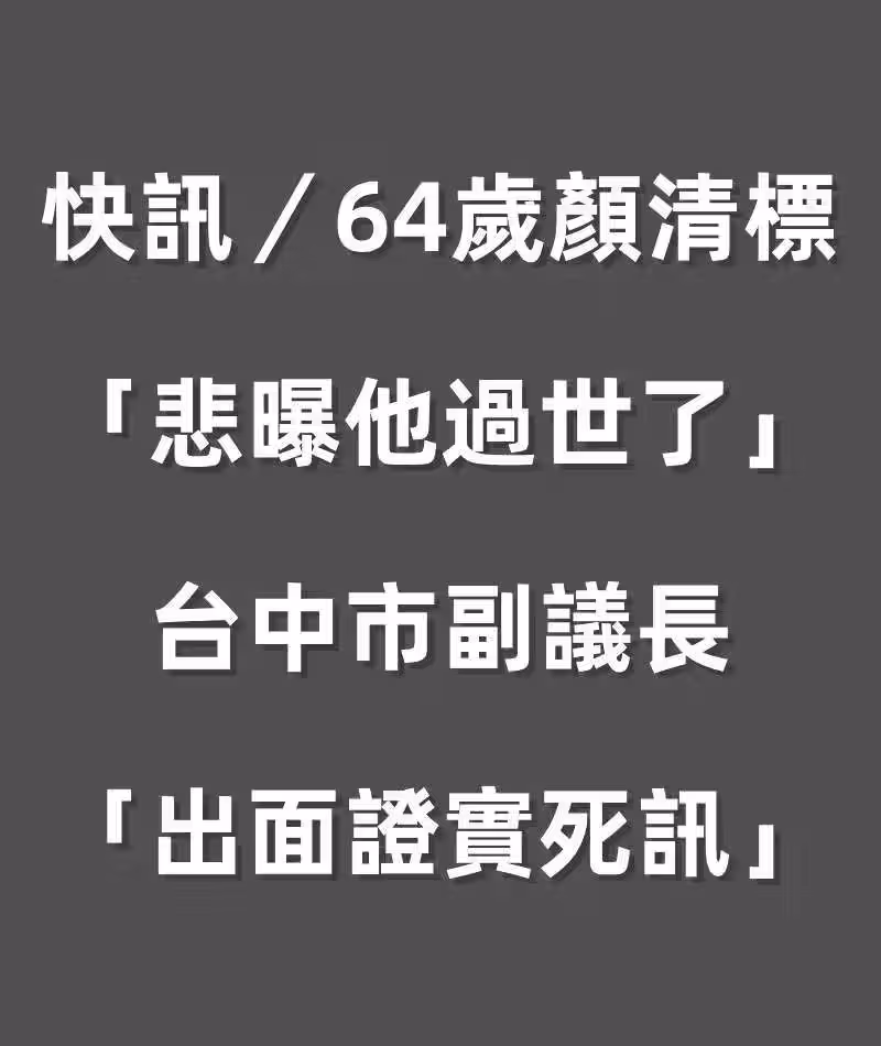 快訊/64歲顏清標「悲曝他過世了」!台中市副議長 「出面證實死訊」!