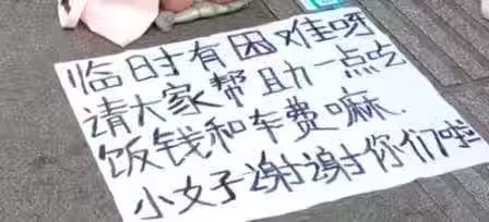 請大家幫助一點吃飯錢和車費嘛~ 小女子謝謝你們啦!」