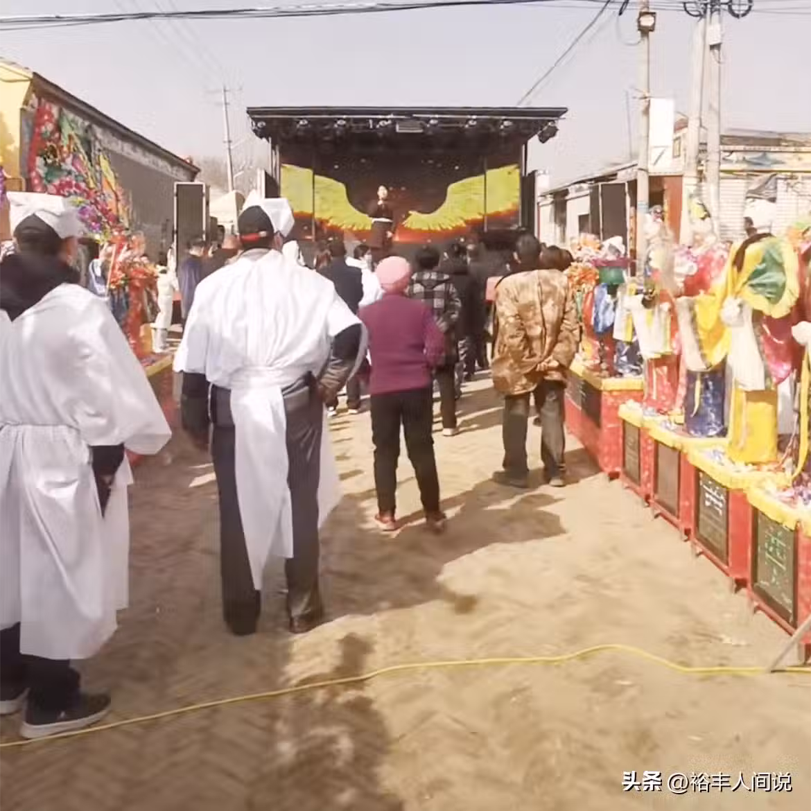 舞台的兩邊除了巨大的花束之外,還有來自許多好友、親戚以及弟子所送的花圈。由於夜晚需要守靈,所以一些歡鬧的場面也會在夜晚上演,作為弟子的楊光、莊傑以及張岩等等也是賣力演唱。