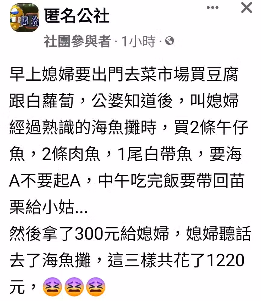 去市場買菜!公婆給媳300塊「叫她買5條魚」還指定攤販 「她一結帳傻了」網怒:肯定是衝康
