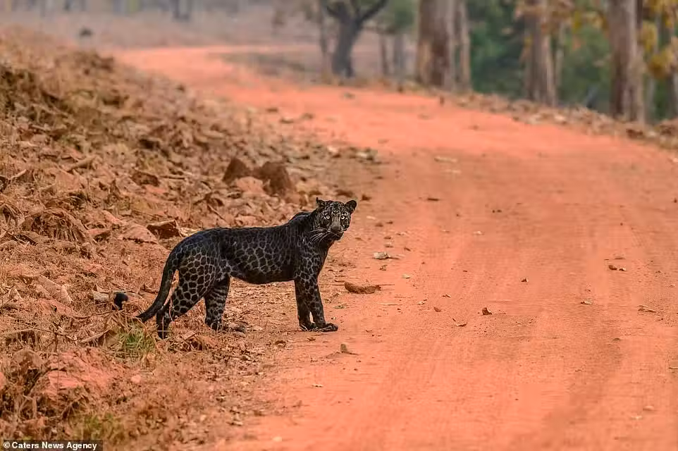 當阿努拉格發現這隻黑花豹的時候,大概只有相隔9公尺遠,而且牠當時正在獵鹿,真的是驚喜又刺激的一幕!根據當地導遊推測,這隻豹應該也是因為基因缺陷導致黑色素沉澱,所以才會有如此獨特的毛色,即使在印度這麼多野生貓科動物的地方,也還是相當稀有!