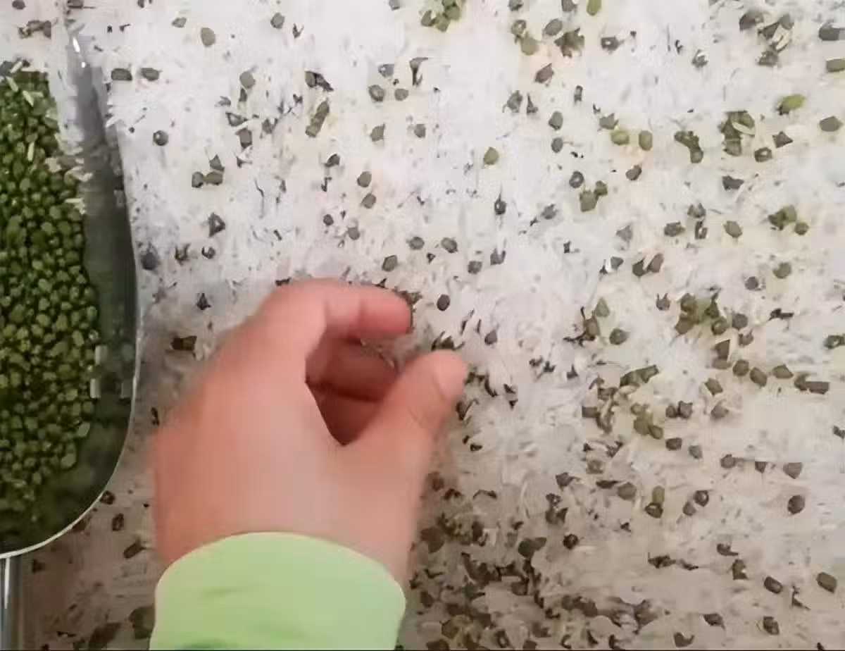 原本白花花的大米,被摻入了綠豆後,儼然變成了「雜糧」。超市工作人員對此也很無奈,讓文文爸要麼將兩者分開,要麼就買回家。