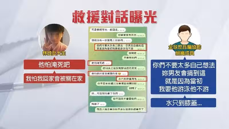 《三立新聞網》也獨家揭露國際反詐騙組織與女大生的對話,女大生表達想要等男友一起回去,救援組織回她這樣反而會害男友,組織成員Sammy表示「她也不是專程過來搞詐騙的,真的是千里尋愛,她比較想要跟她男朋友在一起,過去也在一起回來也要在一起。那她男朋友回不來嘛,所以現在就兩個人綁在一起,不知道該怎麼辦」。