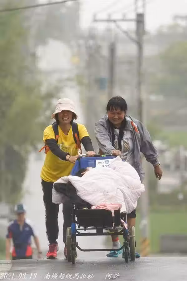 不僅如此,陳媽媽接著表示,路跑的過程中發生了件印象深刻的事,過程中有一位跑友似乎見她推著孩子跑很吃力,便湊近問道:「為什麼不送他去安養院?」