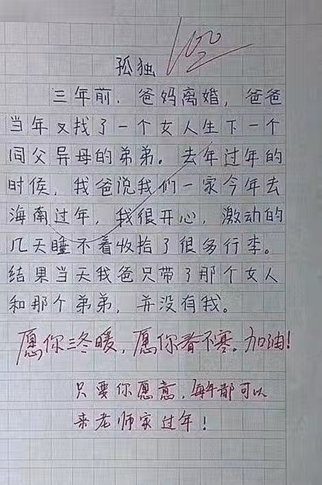 6歲童百字作文《孤獨》得滿分,全篇未提孤獨字裡行間都是淚,道盡心酸,老師:看完只有滿滿的心疼