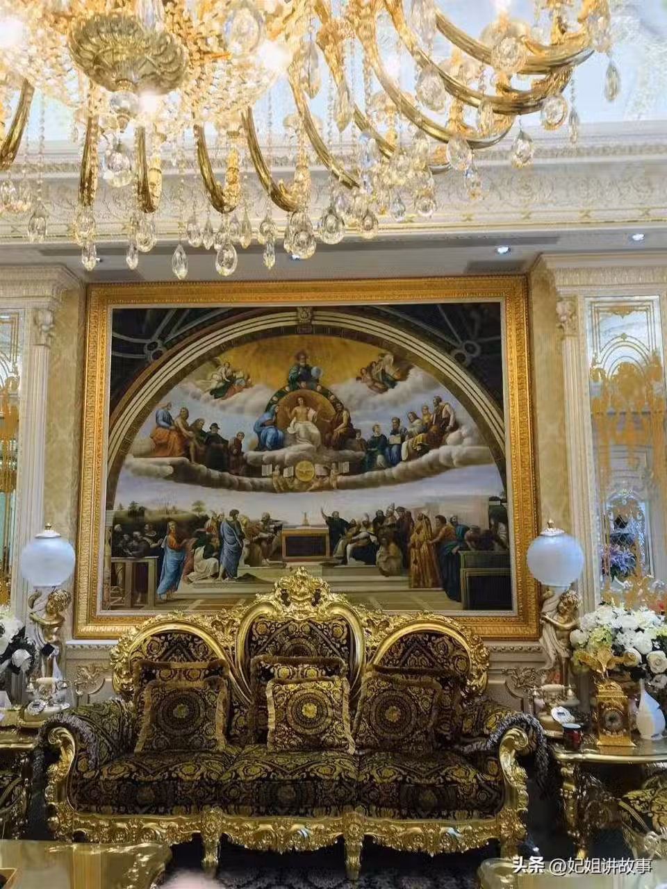 室內的天花板先用金漆打底,然後再用純金箔貼上。光是室內的整體裝潢,胡漢龑就花掉了5億新台幣。豪宅的8樓是澡堂,澡堂配備了足以媲美6星級飯店的SPA設備。