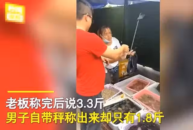 男子買海鮮自己帶秤,3.3斤成1.8斤,老闆娘頓時黑臉:你走吧,我不賣了!