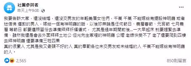 夫妻設有神明廳,逢年過節都要拜!更讓人頭疼的是神明廳設在四樓,每次都要爬上爬下拿貢品,體力真的吃不消!奉勸千萬別嫁「家有神明廳的男人」