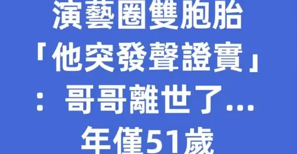 悲慟!!! 演藝圈雙胞胎「他突發聲證實」哥哥離世了... 年僅51歲「後事已結束」!