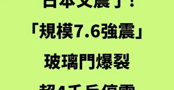 快訊/日本又震了!「規模7.6強震」玻璃門爆裂,超4千戶停電,傷亡狀況曝