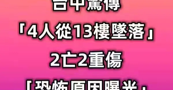 突發/台中驚傳「4人從13樓墜落」! 2亡2重傷「恐怖原因曝光」
