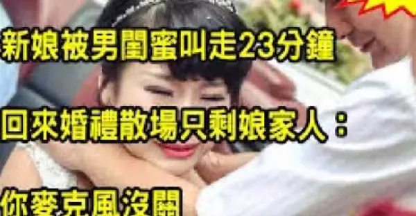 新娘被男閨蜜叫走23分鐘,回來婚禮散場只剩娘家人:你的麥克風沒關