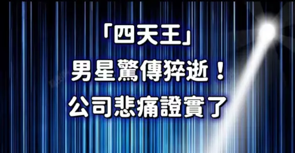 快訊/「四天王」男星驚傳猝逝! 公司悲痛證實了