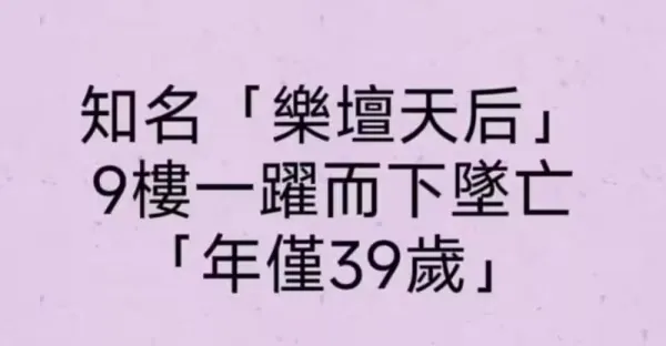 知名「樂壇天后」9樓躍下墜亡!「享年39歲」