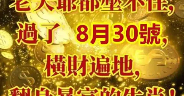 老天爺都壓不住,過了8月30號橫財遍地,翻身暴富的生肖