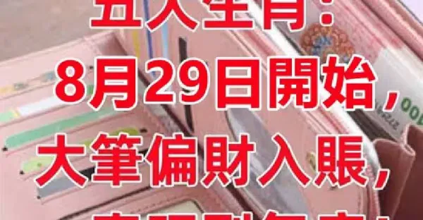 8月29日開始大筆偏財入帳,一直旺到年底的五大生肖!