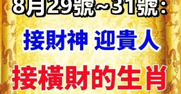 8月29號~31號:接財神,迎貴人,接橫財的生肖
