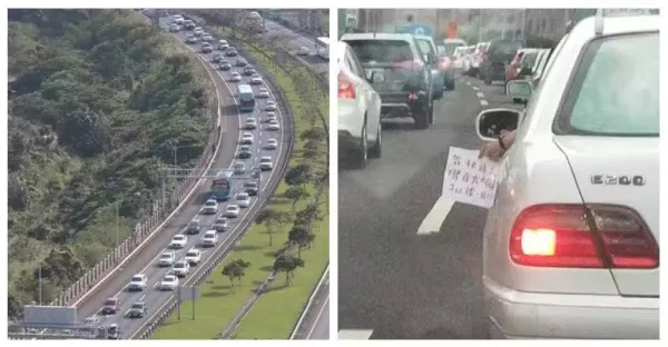 假日出遊塞在國5!愛睏駕駛撐不住「搖下車窗求救」 網細看「紙條上內容」笑歪:不幫沒人性