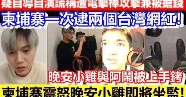 柬埔寨一次逮兩個台灣網紅!晚安小雞與阿鬧被上銬!疑自導自演謊稱遭電擊棒攻擊兼被搶錢!柬埔寨震怒晚安小雞即將坐監!
