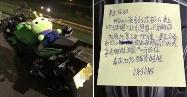 重機後座掛娃娃「家長留紙條拿走」:小孩想要!他急找人「說有留錢也沒看到」最後發展掀熱議