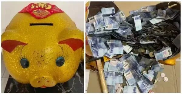 年末殺豬公!他存一整年「打破豬公畫面超狂」 一片藍藍紙鈔海「總額突破6位數」網友全跪了